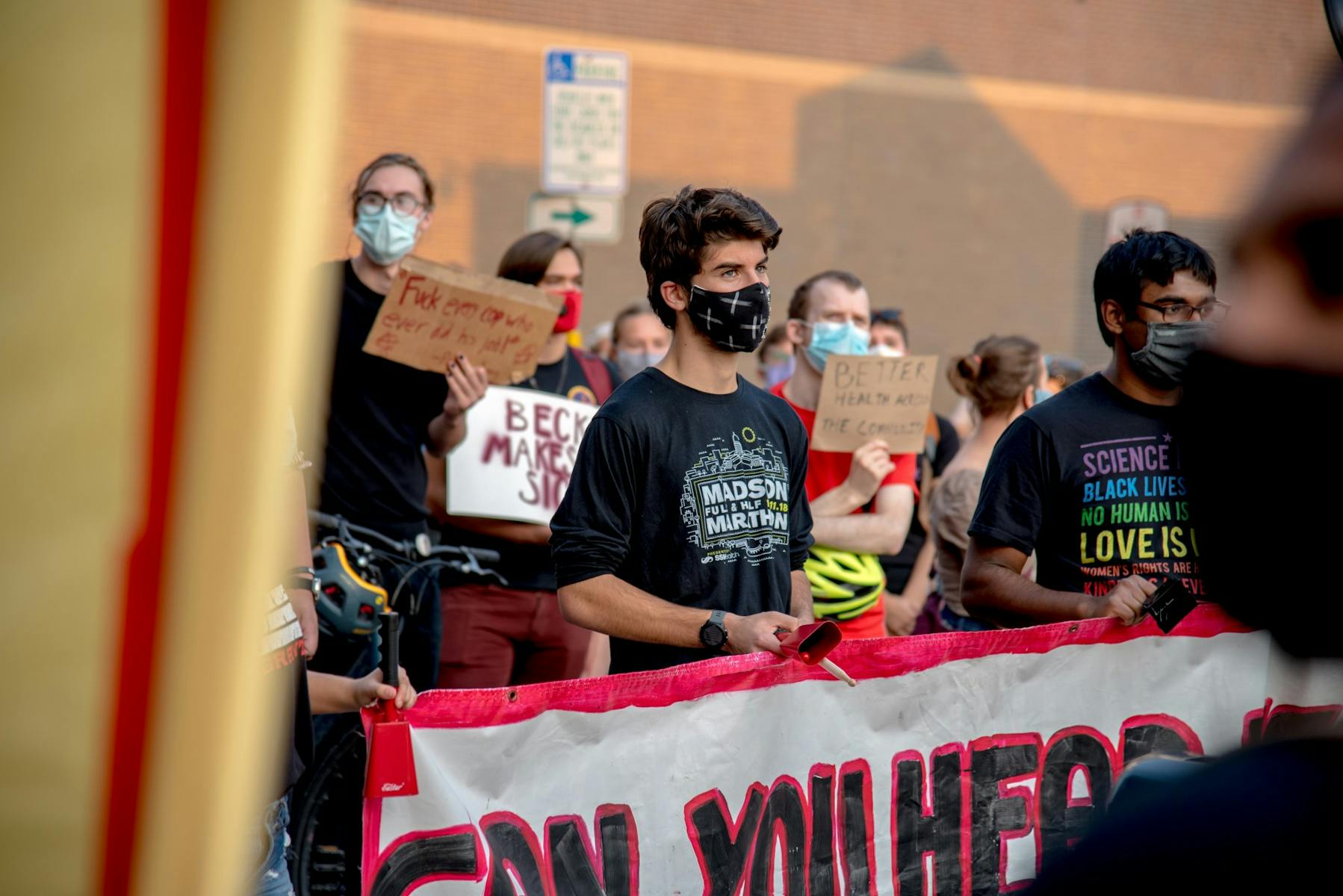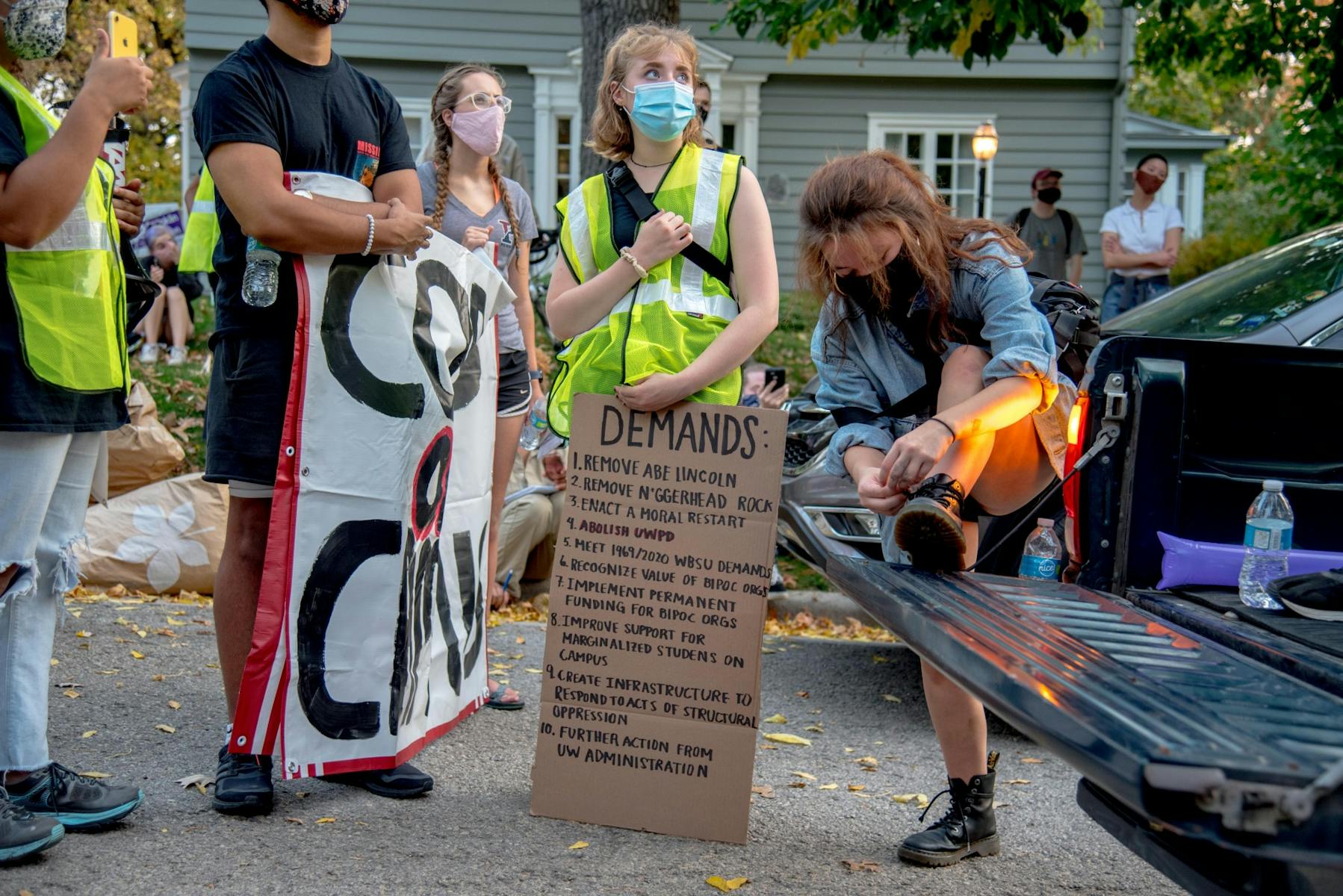 Scenes from an Oct. 9 march organized by the UW BIPOC Coalition and TAA to call for racial justice and a police-free campus. Students marched from Camp Randall stadium to the UWPD headquarters and the Chancellor's mansion.