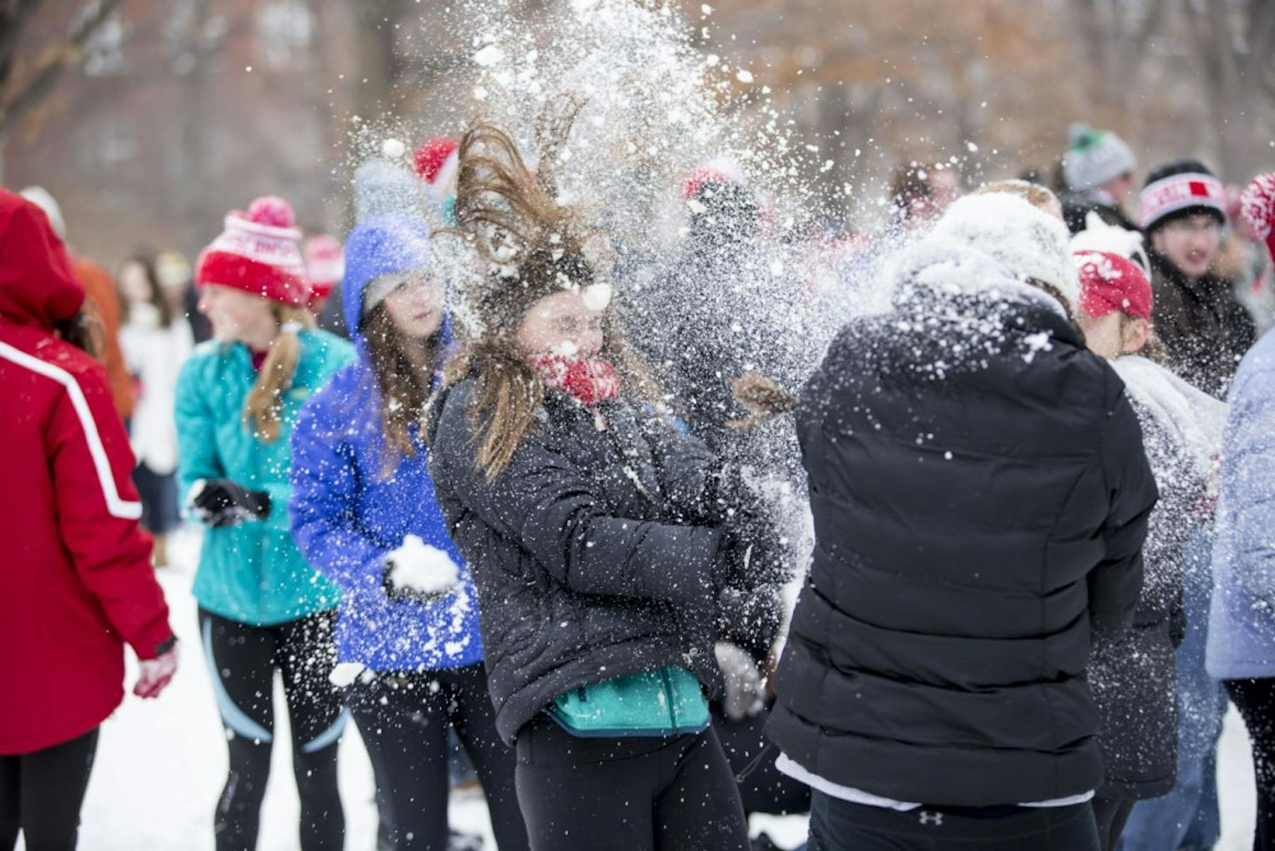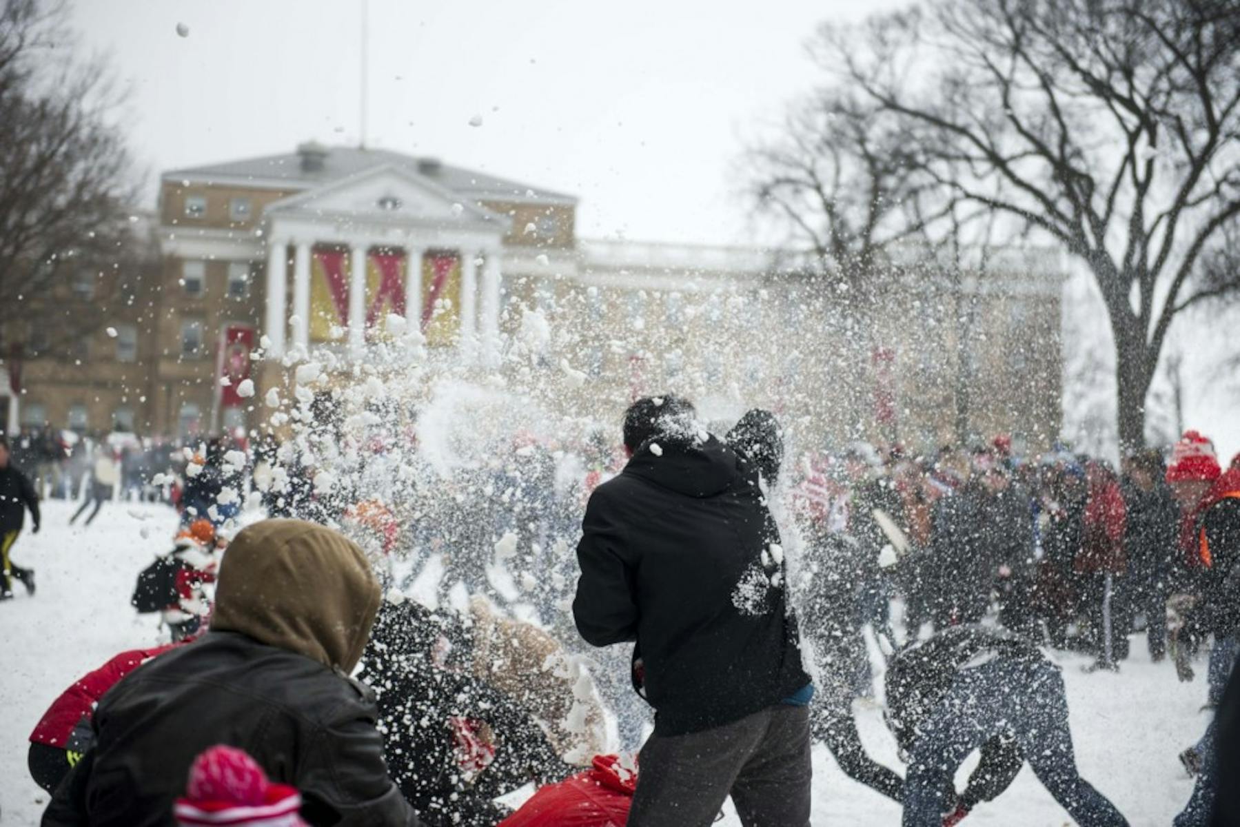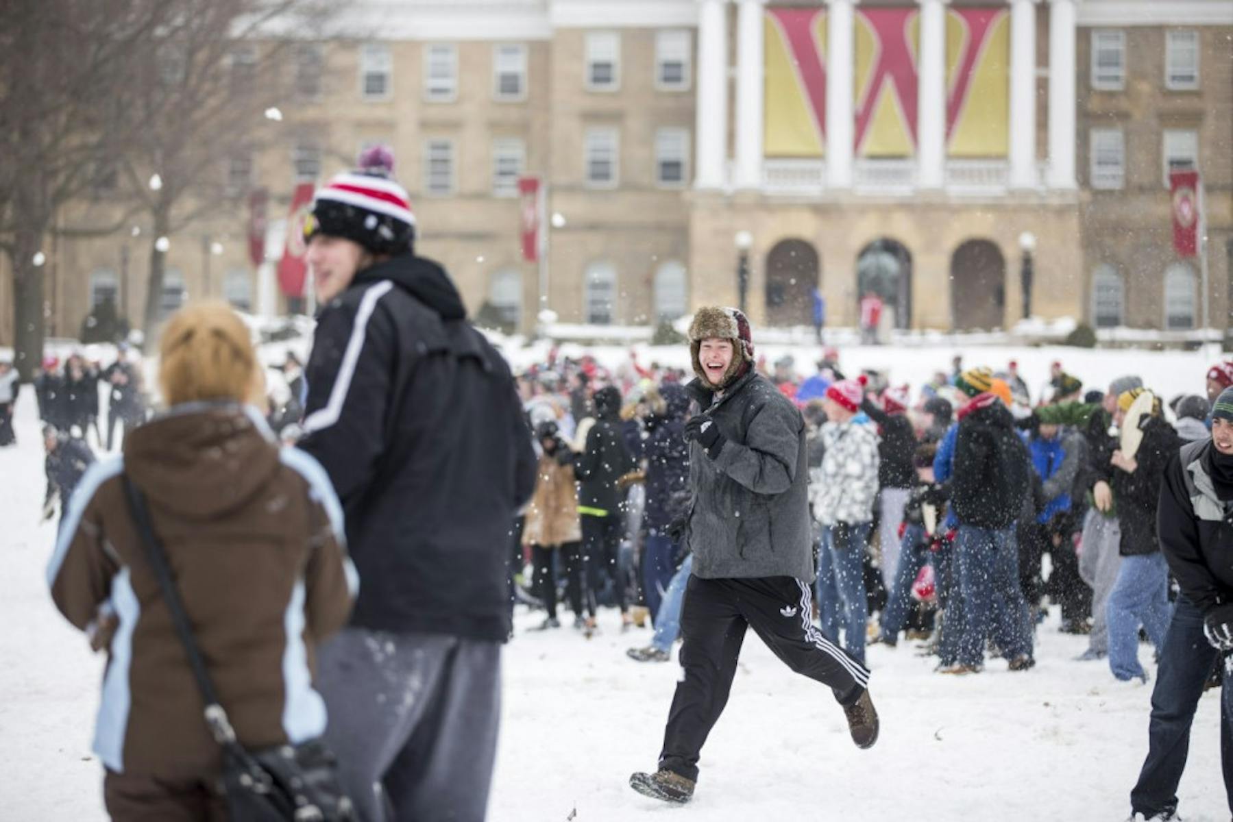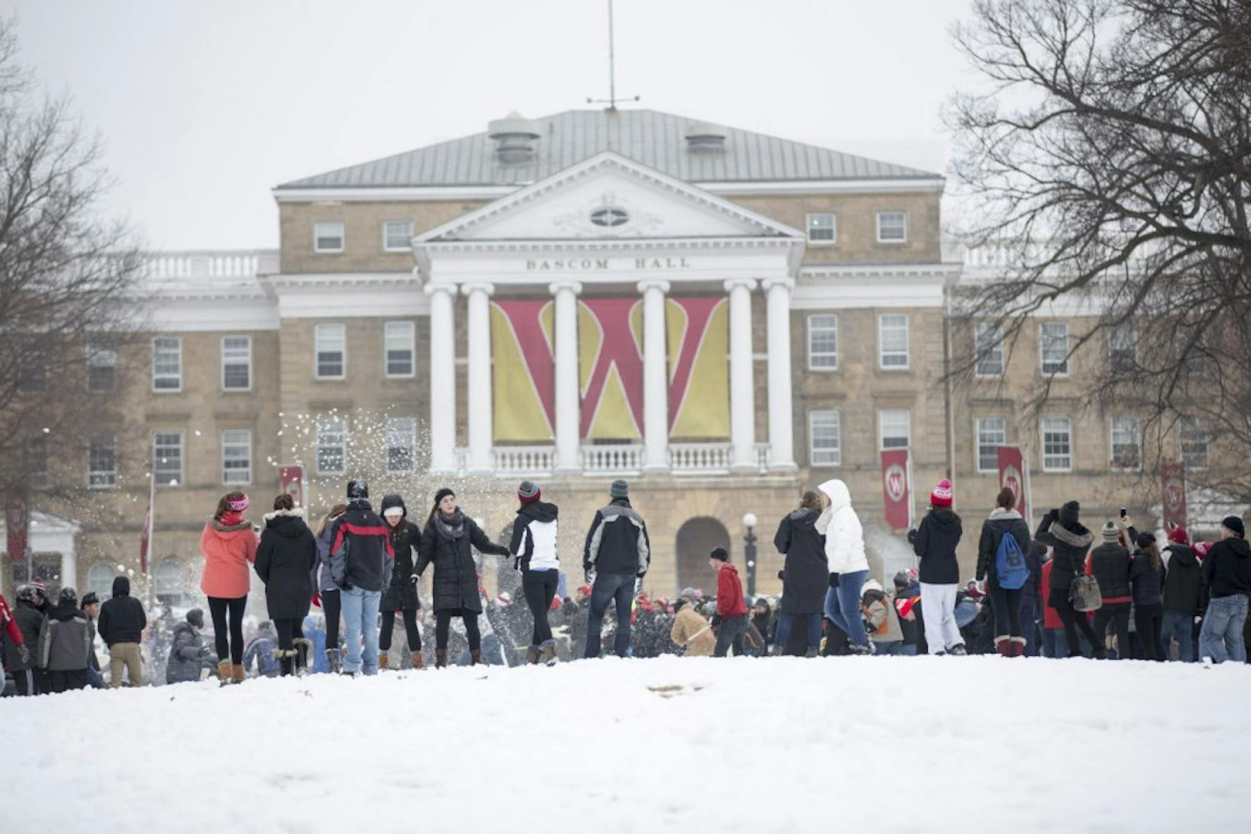 Students gathered on Bascom hill Sunday morning to participate in a yearly snowball fight between the southeast and lakeshore neighborhoods.