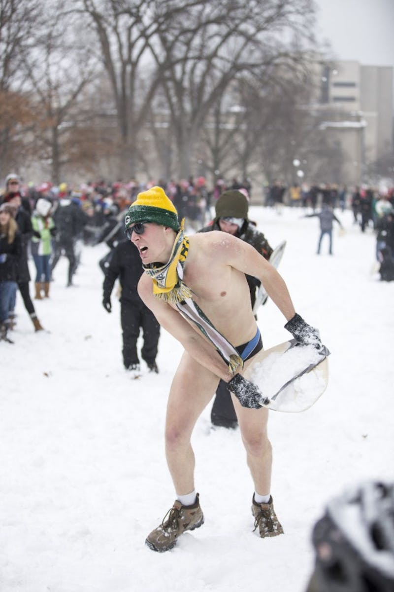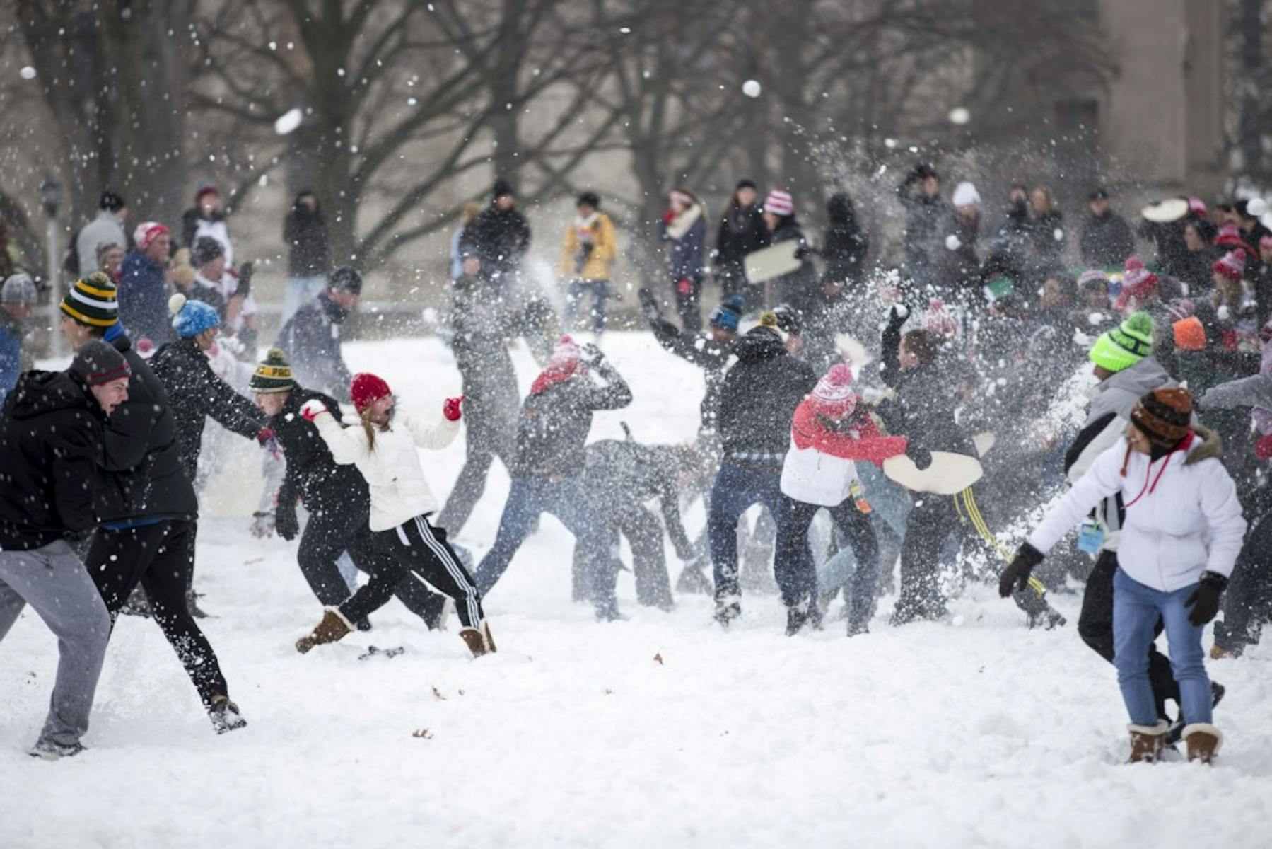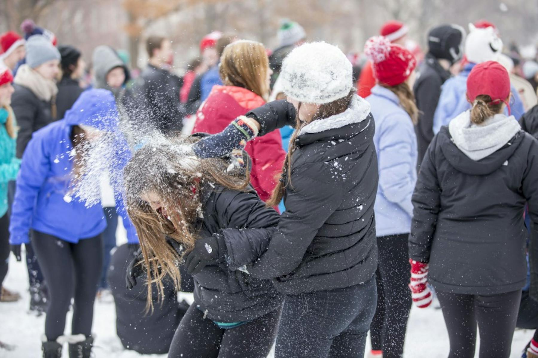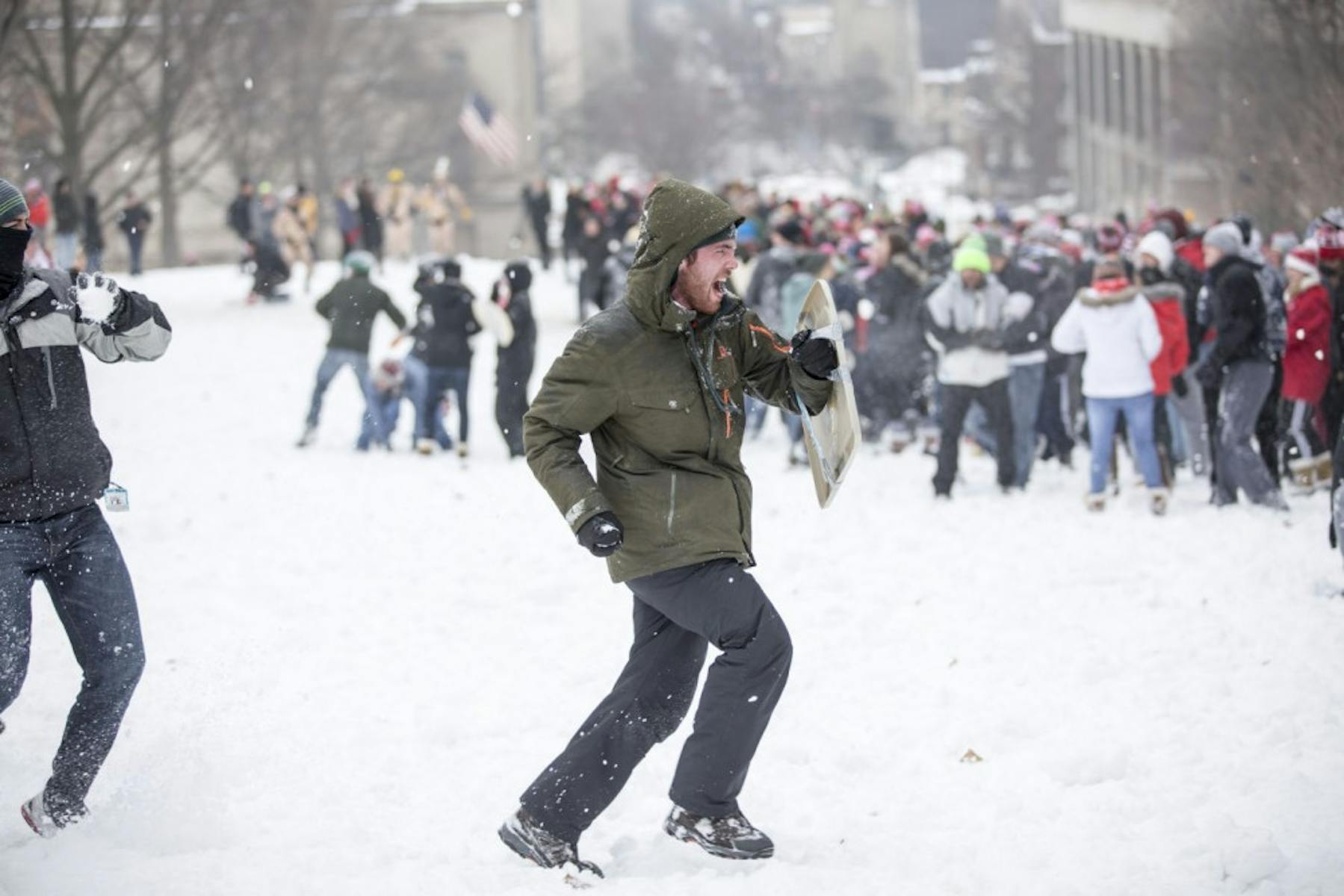 Students gathered on Bascom hill Sunday morning to participate in a yearly snowball fight between the southeast and lakeshore neighborhoods.