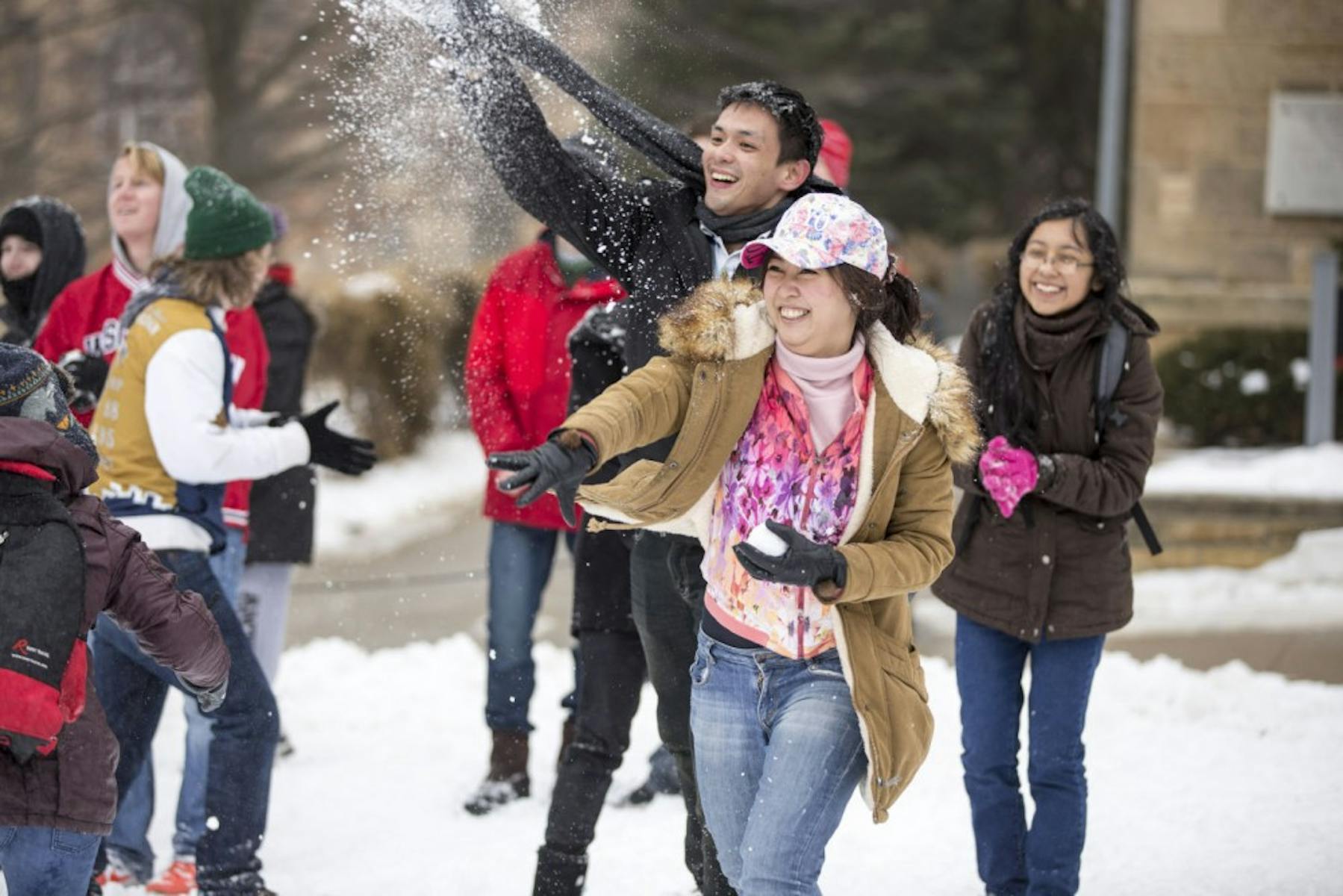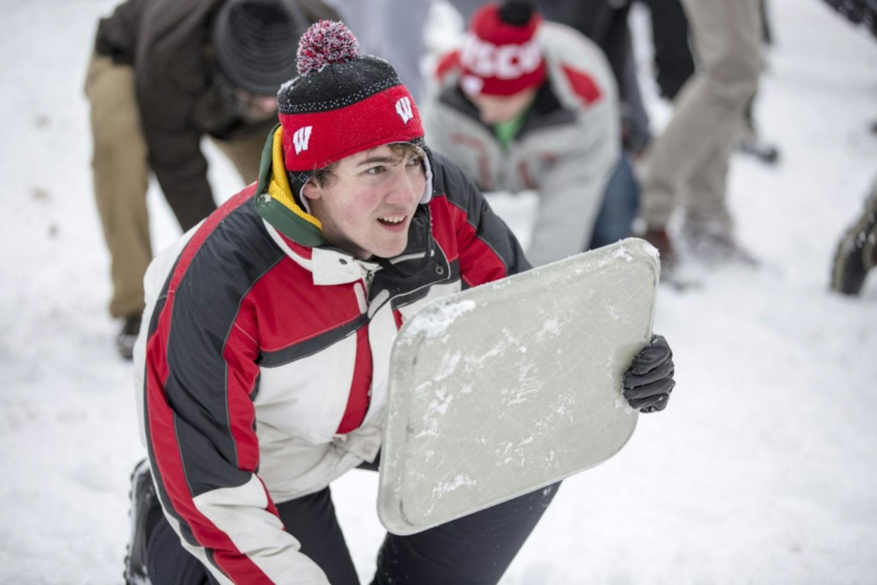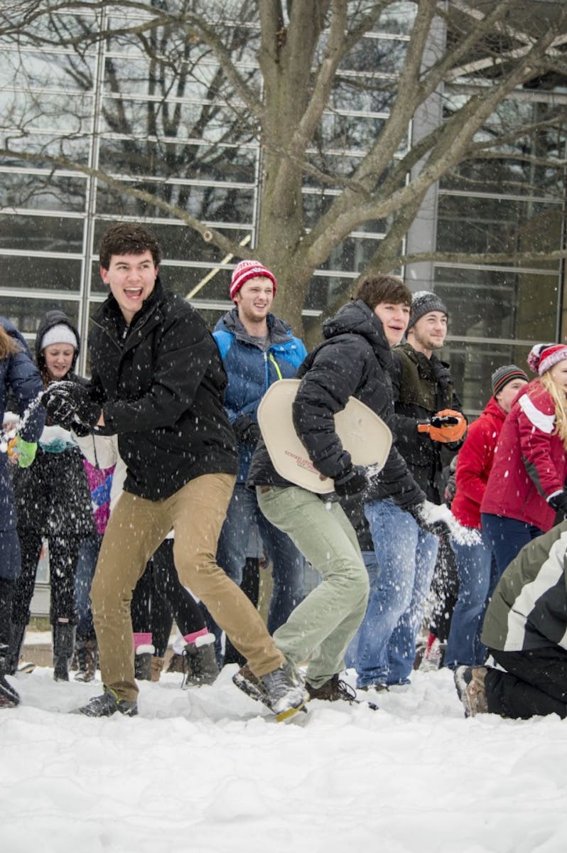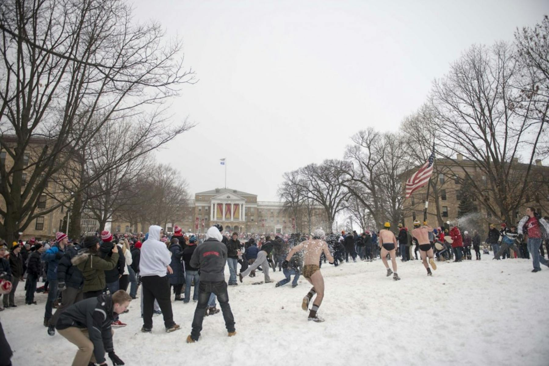 Students gathered on Bascom hill Sunday morning to participate in a yearly snowball fight between the southeast and lakeshore neighborhoods.