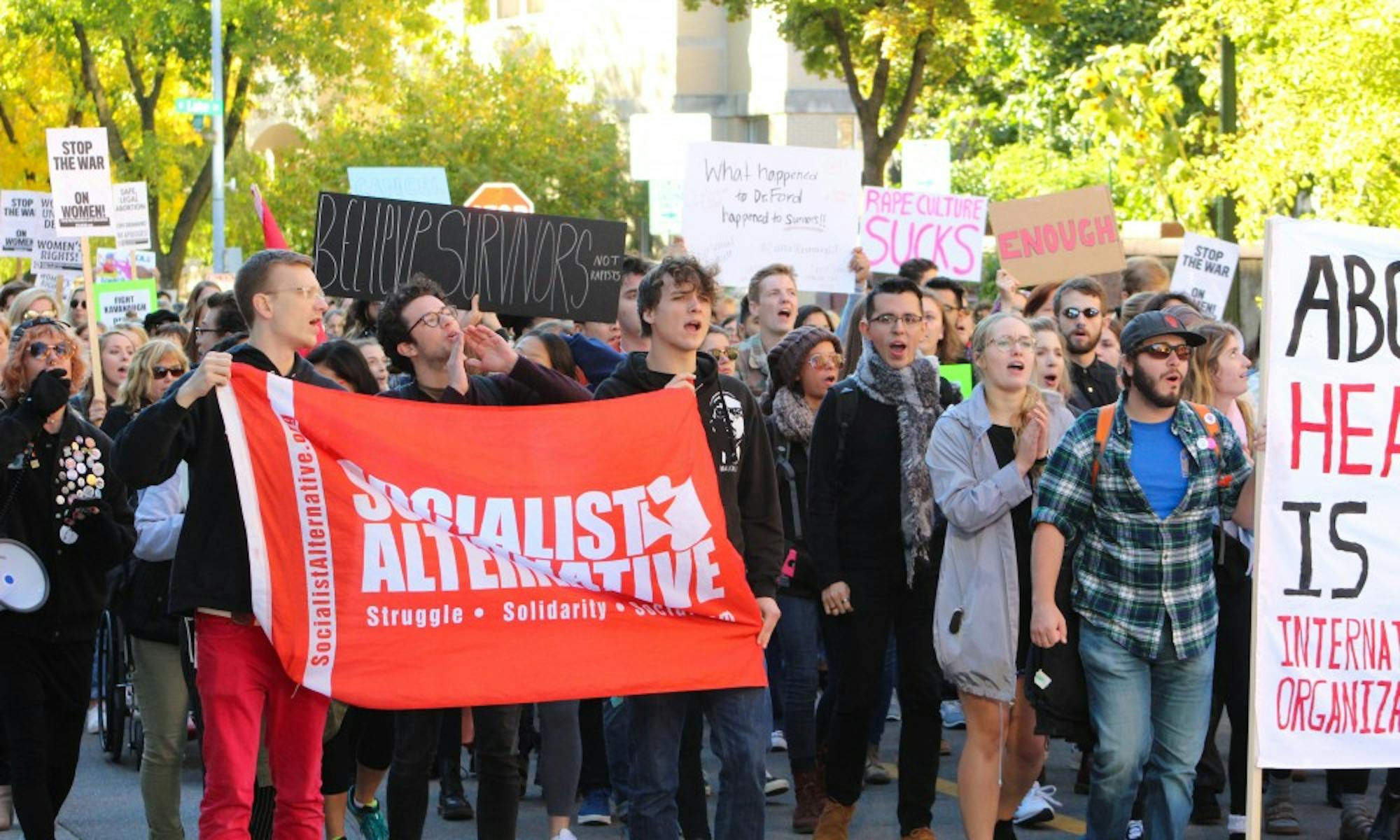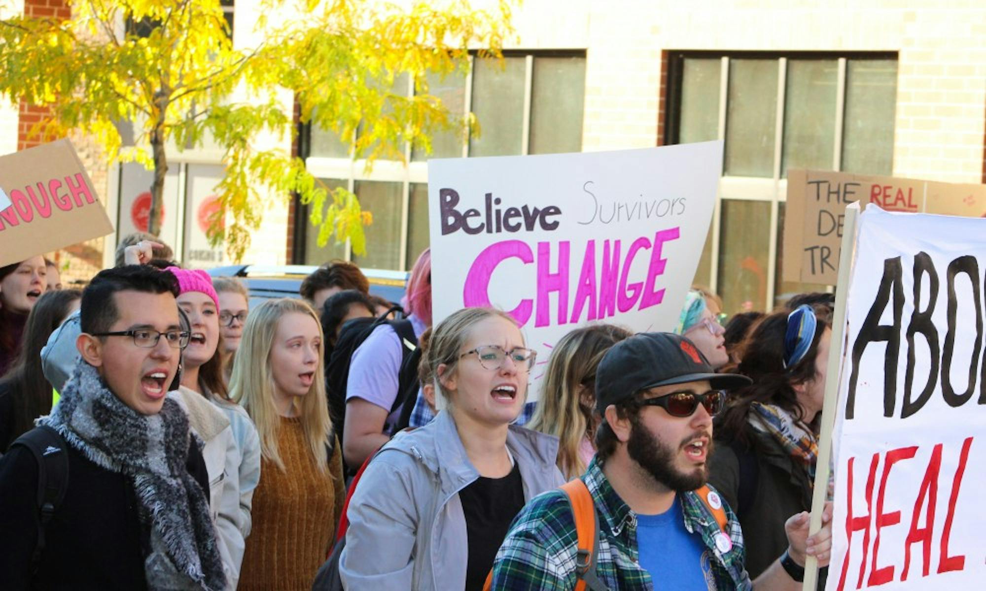 Around 400 UW-Madison students and community protestors marched from Library Mall and down Langdon Street until they reached the Capitol in the #CancelKavanaugh Walkout Against Sexual Assault, a call to stop Judge Brett Kavanaugh's nomination to the U.S. Supreme Court.