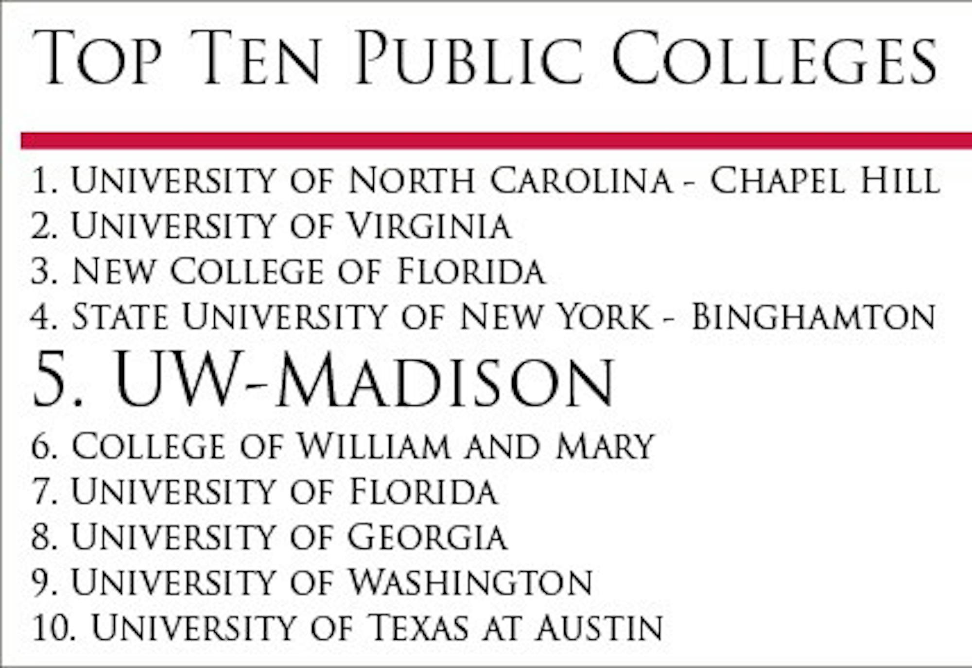 In the midst of a year when student groups have protested the high tuition costs of higher education, UW-Madison is the fifth-highest-valued public university in the country, according to a list released Monday by The Princeton Review.