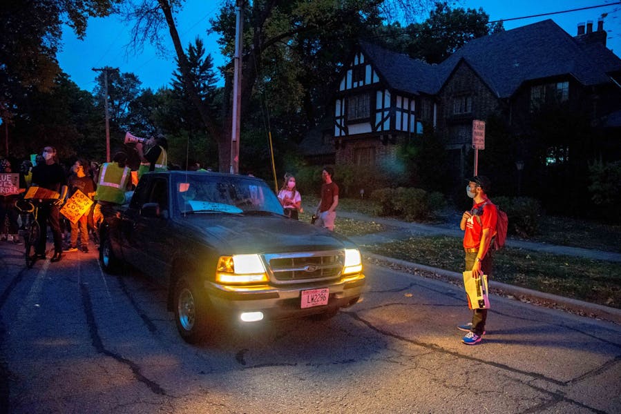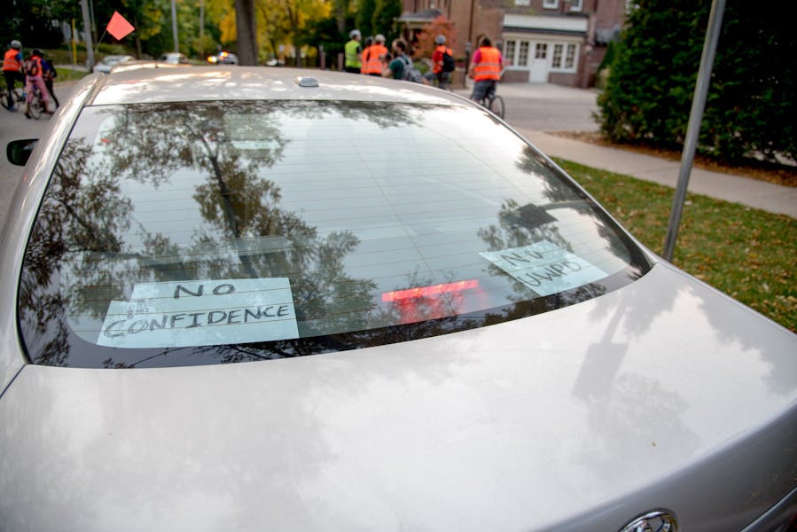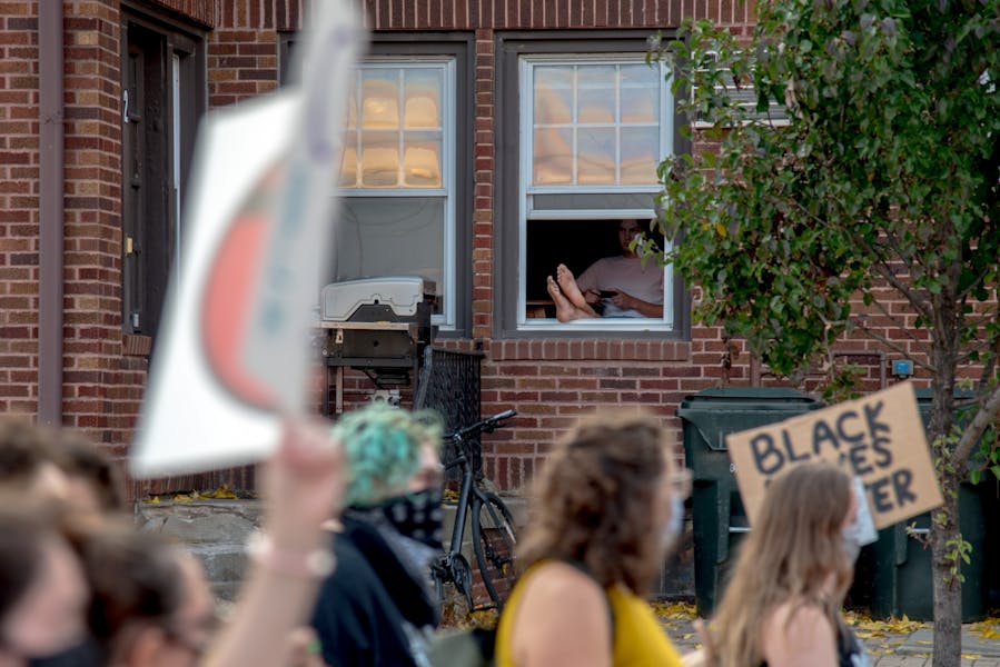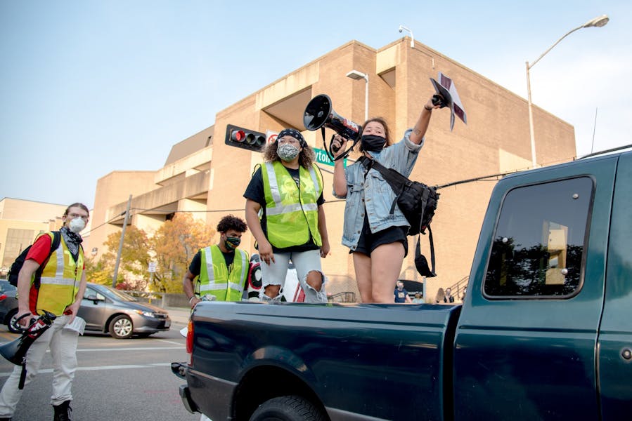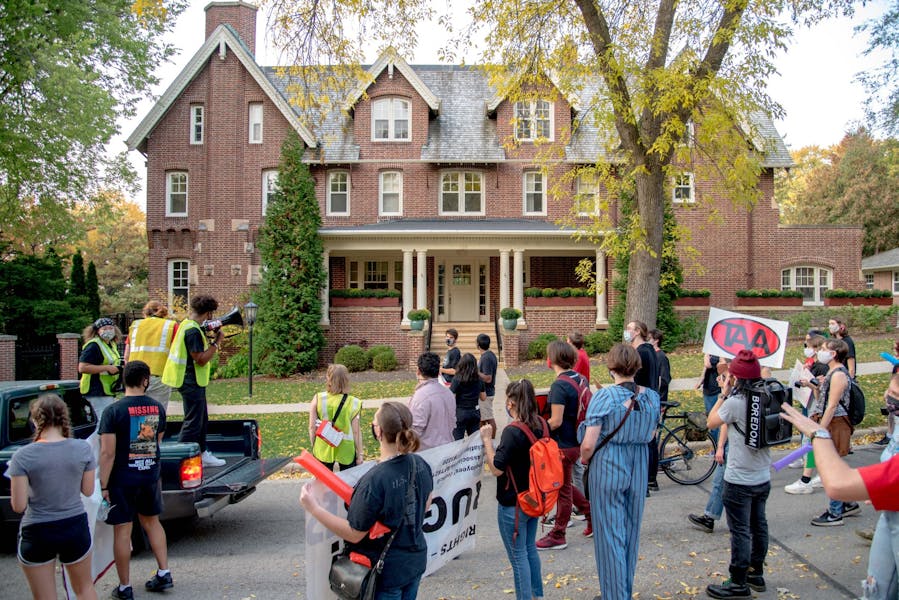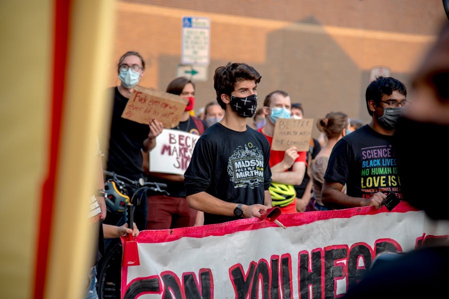 Scenes from an Oct. 9 march organized by the UW BIPOC Coalition and TAA to call for racial justice and a police-free campus. Students marched from Camp Randall stadium to the UWPD headquarters and the Chancellor's mansion.
