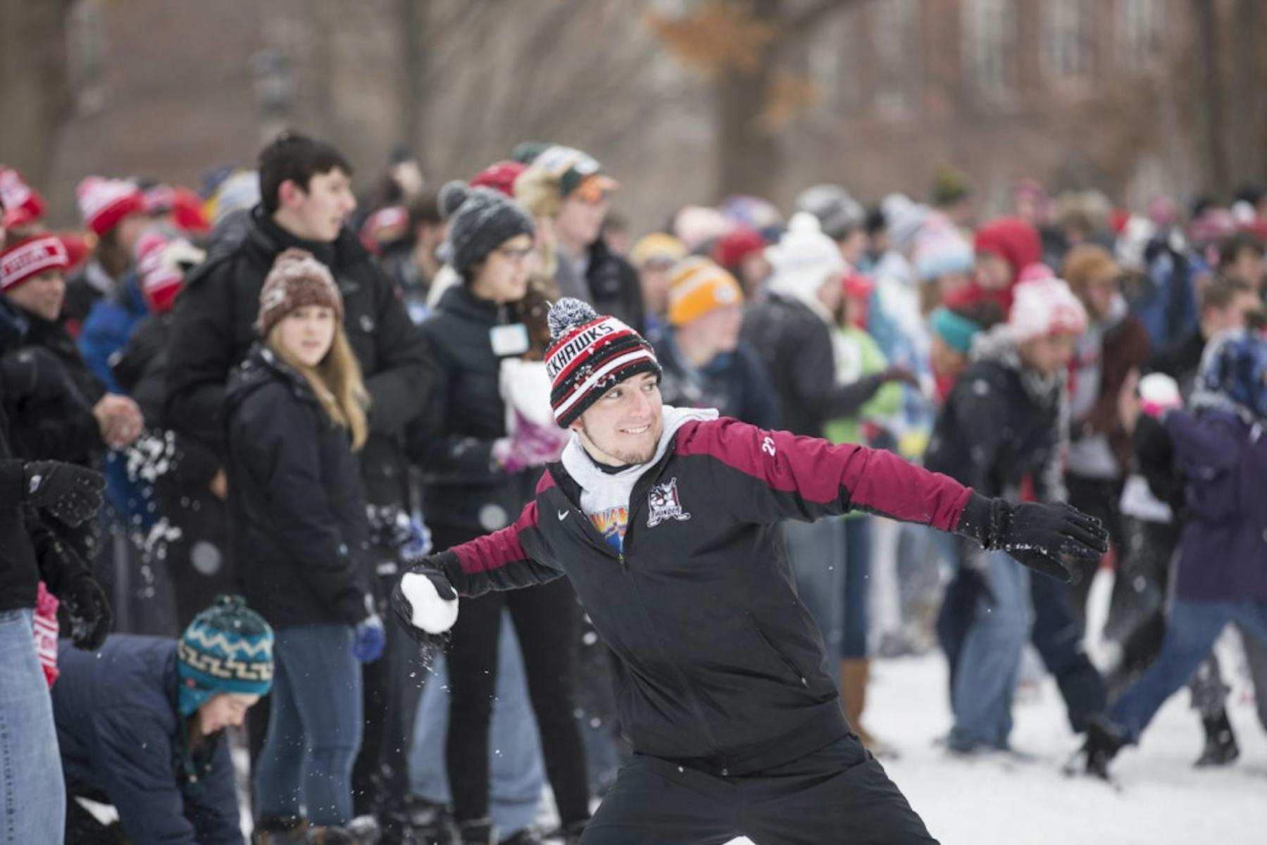 Students gathered on Bascom hill Sunday morning to participate in a yearly snowball fight between the southeast and lakeshore neighborhoods.