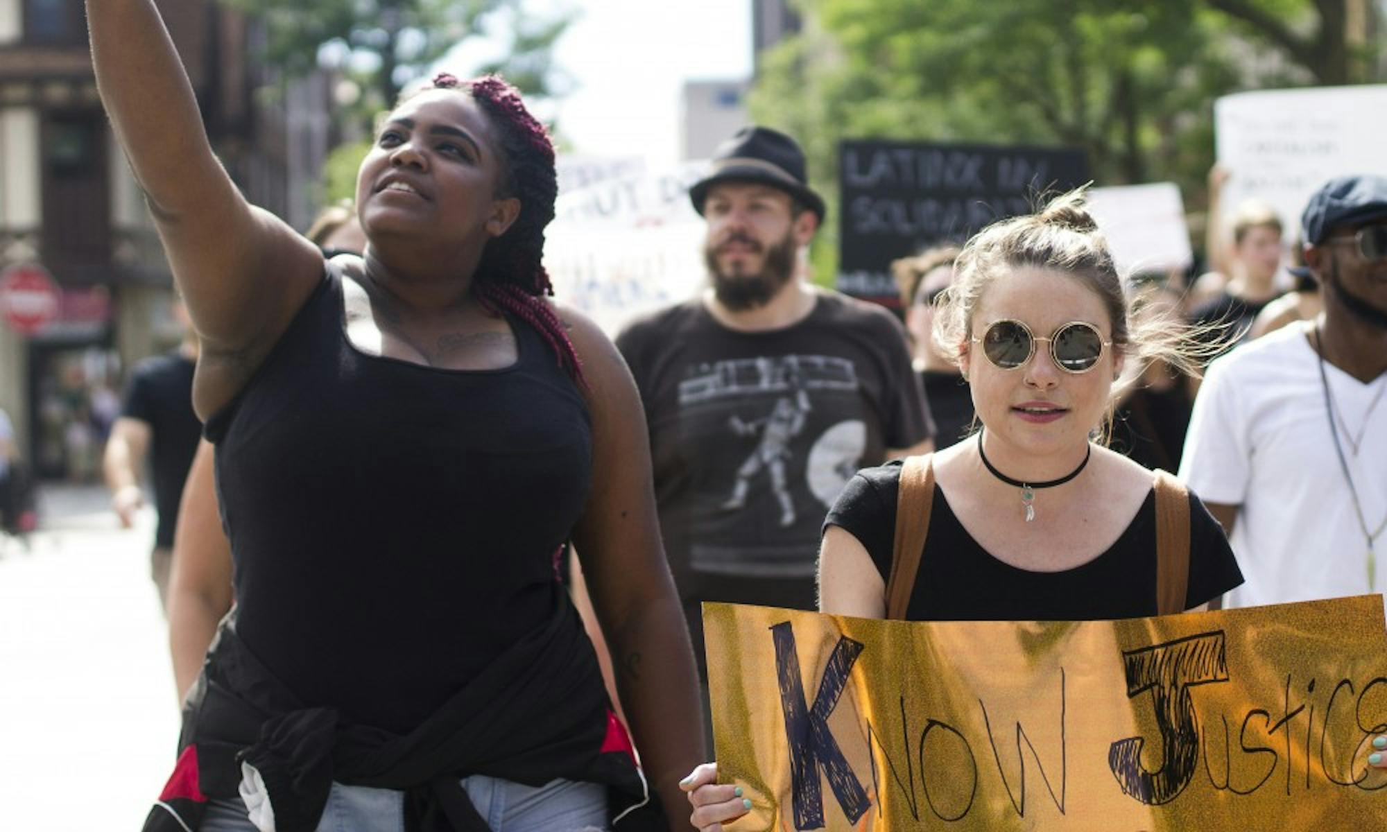Supporters of the Black Lives Matter movement marched down State Street and around Capitol Square Sunday in response to the recent shootings in Baton Rouge, La., suburban St. Paul and Dallas.