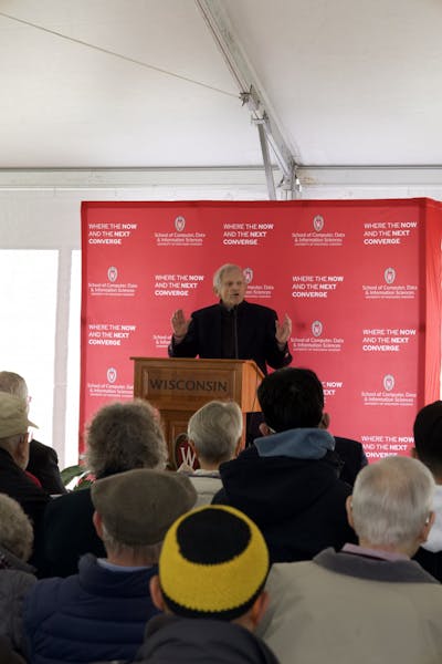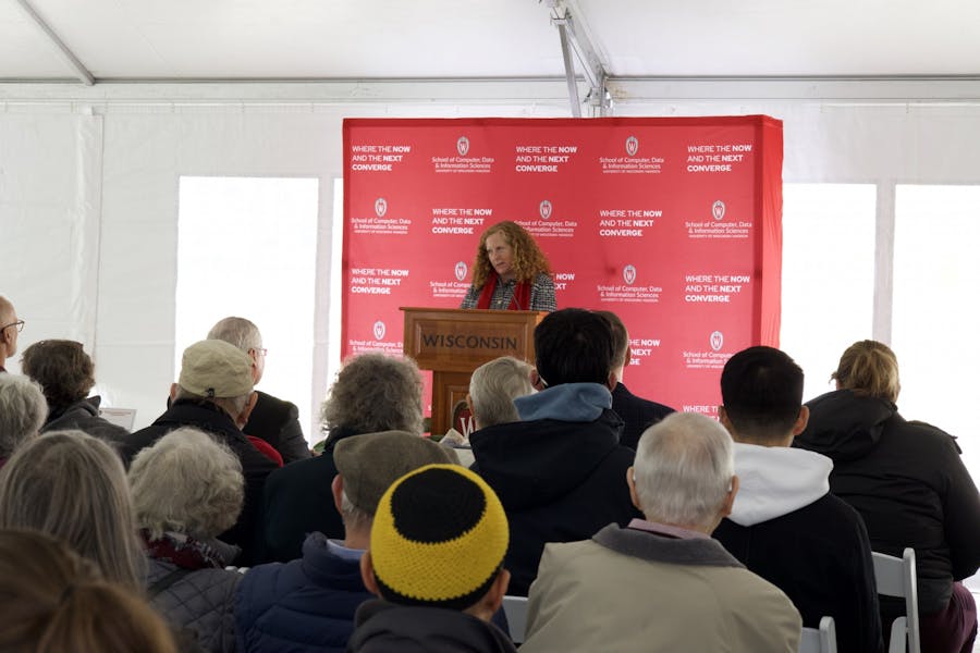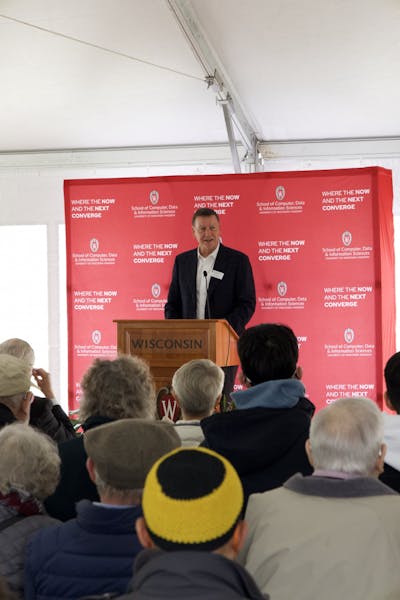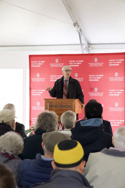 UW-Madison's new academic building, the School of Computer, Data & Information Sciences, was dedicated by community members on its current construction site on April 25, 2023. Among the speakers that honored this event were Wis. Gov. Tony Evers, Chancellor Jennifer Mnookin and UW System President Jay Rothman.