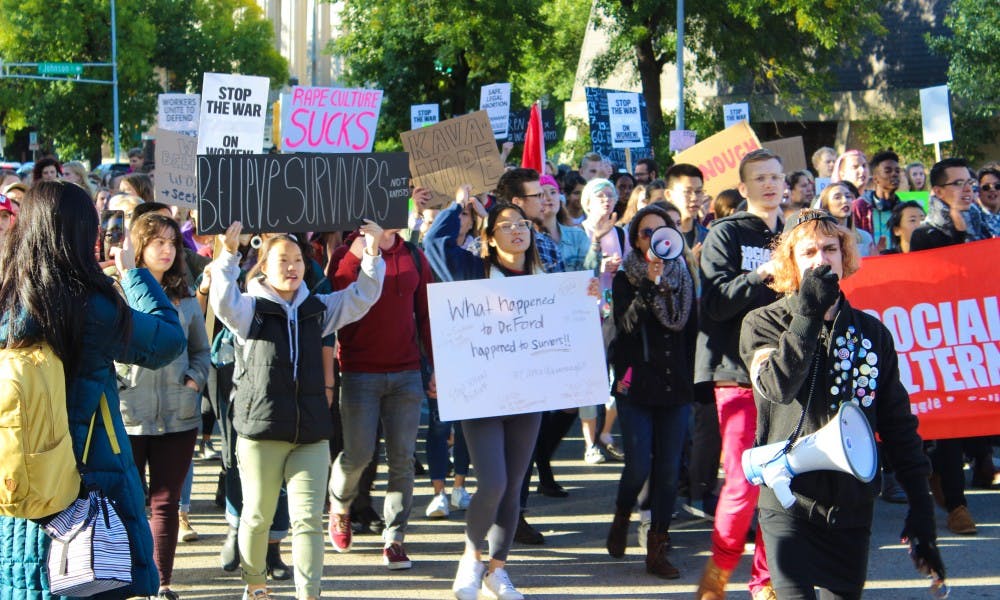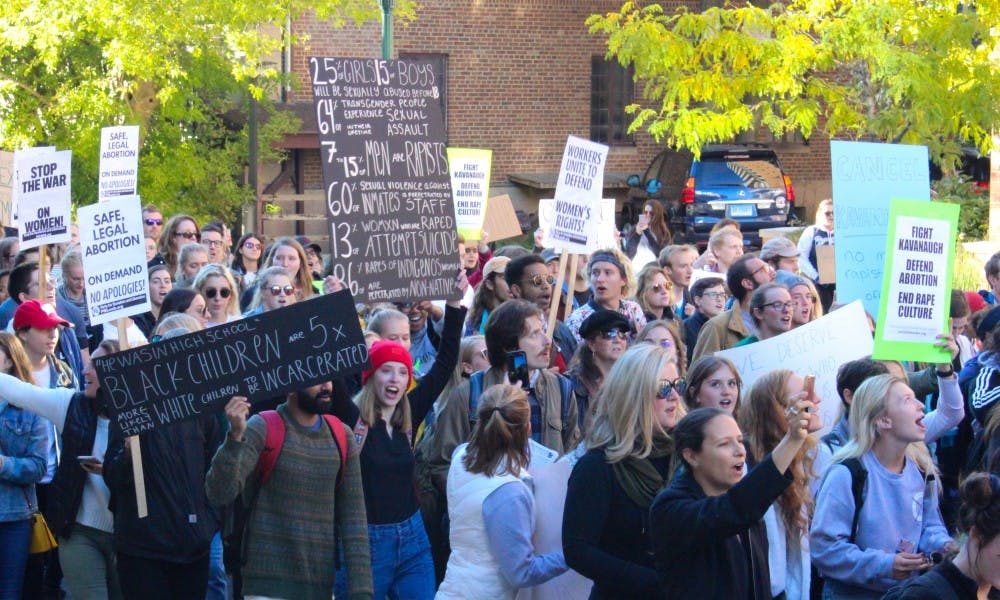 Around 400 UW-Madison students and community protestors marched from Library Mall and down Langdon Street until they reached the Capitol in the #CancelKavanaugh Walkout Against Sexual Assault, a call to stop Judge Brett Kavanaugh's nomination to the U.S. Supreme Court.
