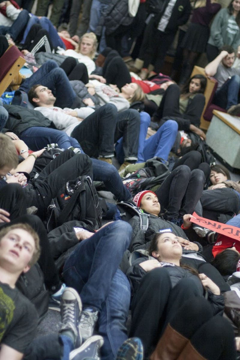 Chants of "hands up, don't shoot" and "black lives matter" once again rang out across the UW-Madison campus as over 800 students flooded Helen C. White Library Sunday in a protest of racial discrimination in criminal justice in Madison and throughout the country.