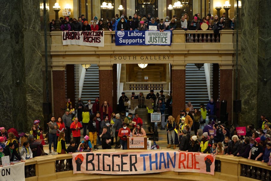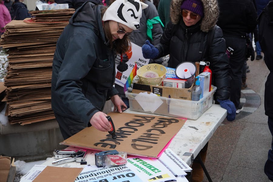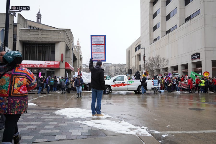 Protestors marched down State Street towards the Wisconsin State Capitol for the National Women's March on January 22nd, the 50th anniversary of Roe v. Wade