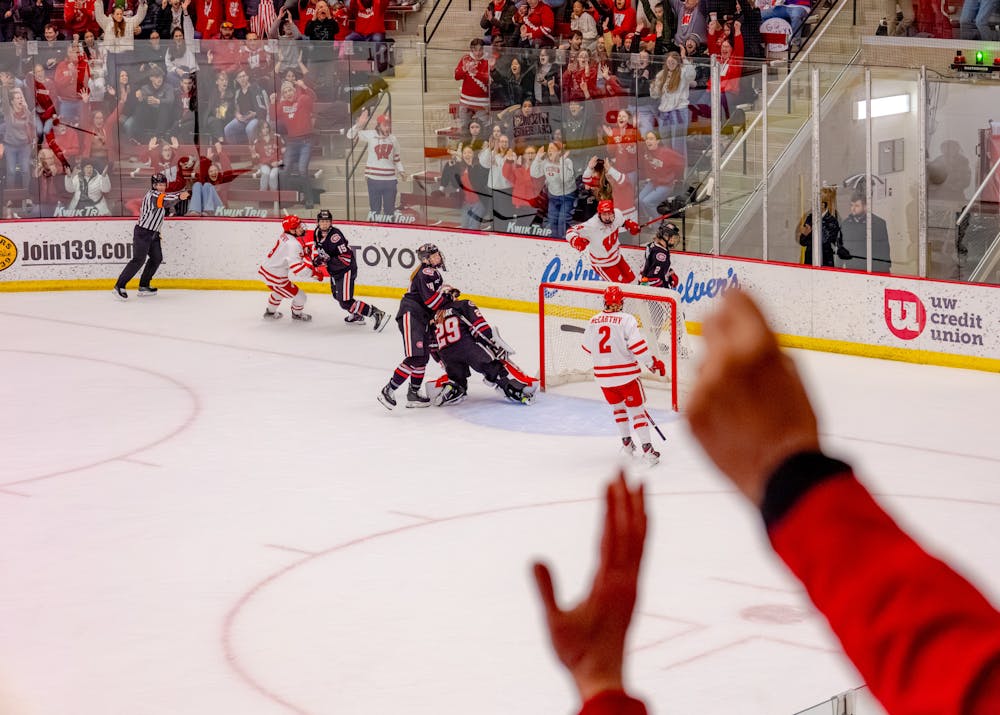 Forward Charlotte Pieckenhagen scores a goal during Wisconsin women's hockey's 9-2 demolition of St. Cloud State on Saturday, Feb. 21, 2026.