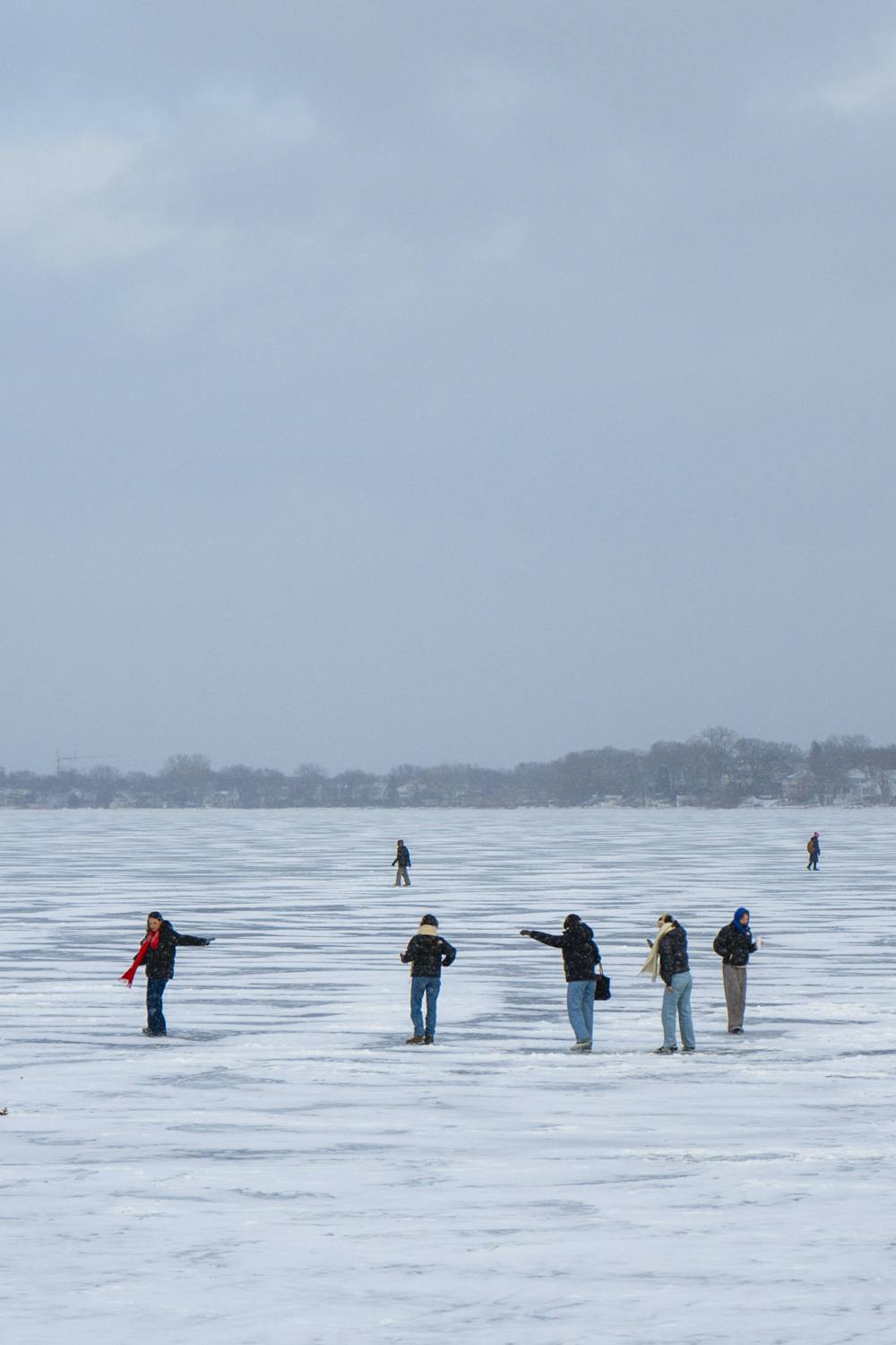 Students pictured walking on a frozen lake Mendota on January 22, 2025.