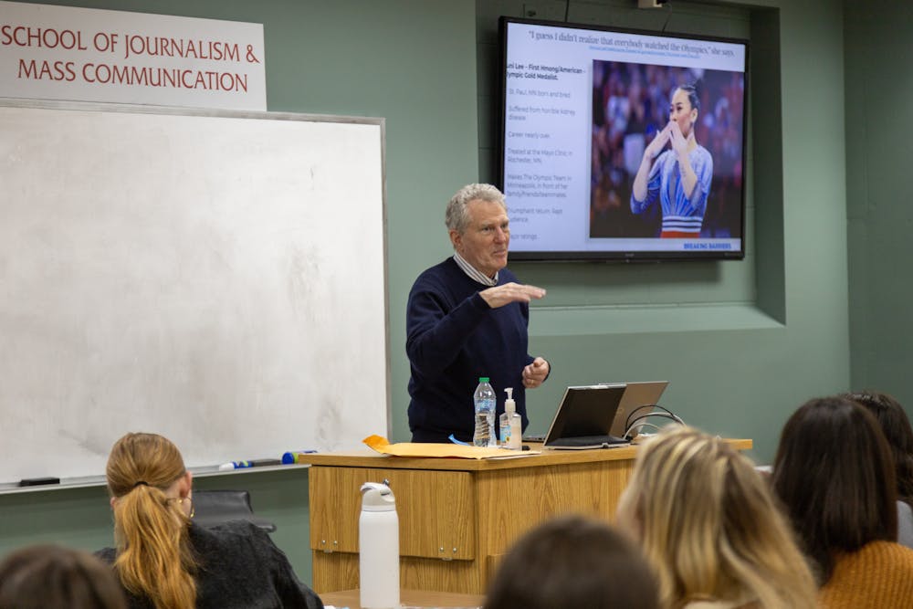 Marv Danielski, a University of Wisconsin alumnus, gave a lecture about marketing for the Olympic Games in Vilas Hall on Monday, Feb. 2, 2026.