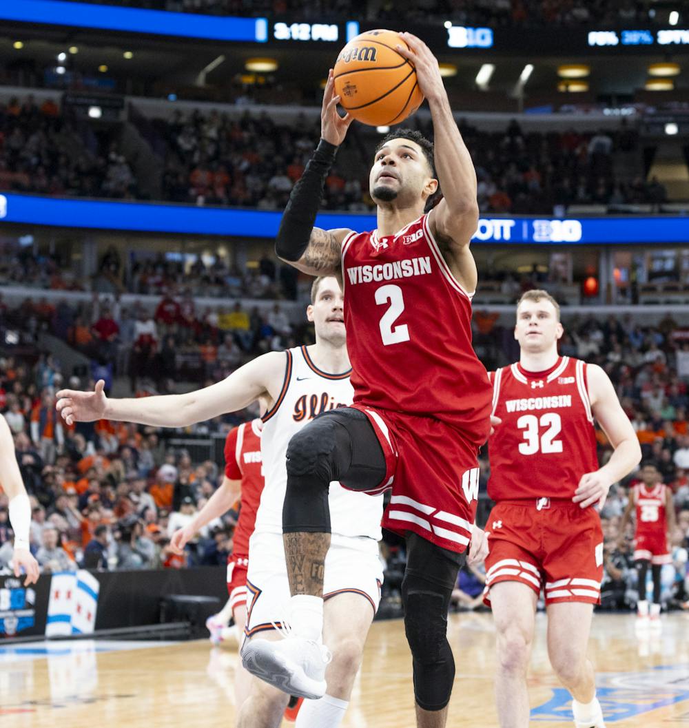 By Jonathan Mintz | 10:59pmKeaton Wagler passes the ball during the Wisconsin men's basketball team's 91-88 overtime victory over Illinois to advance to the semifinal of the Big Ten Tournament on Friday, March 13, 2026.