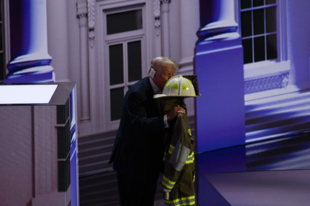 Donald Trump kisses the fire fighter uniform of Corey Comperatore who died in the attempted assassination on Donald Trump.