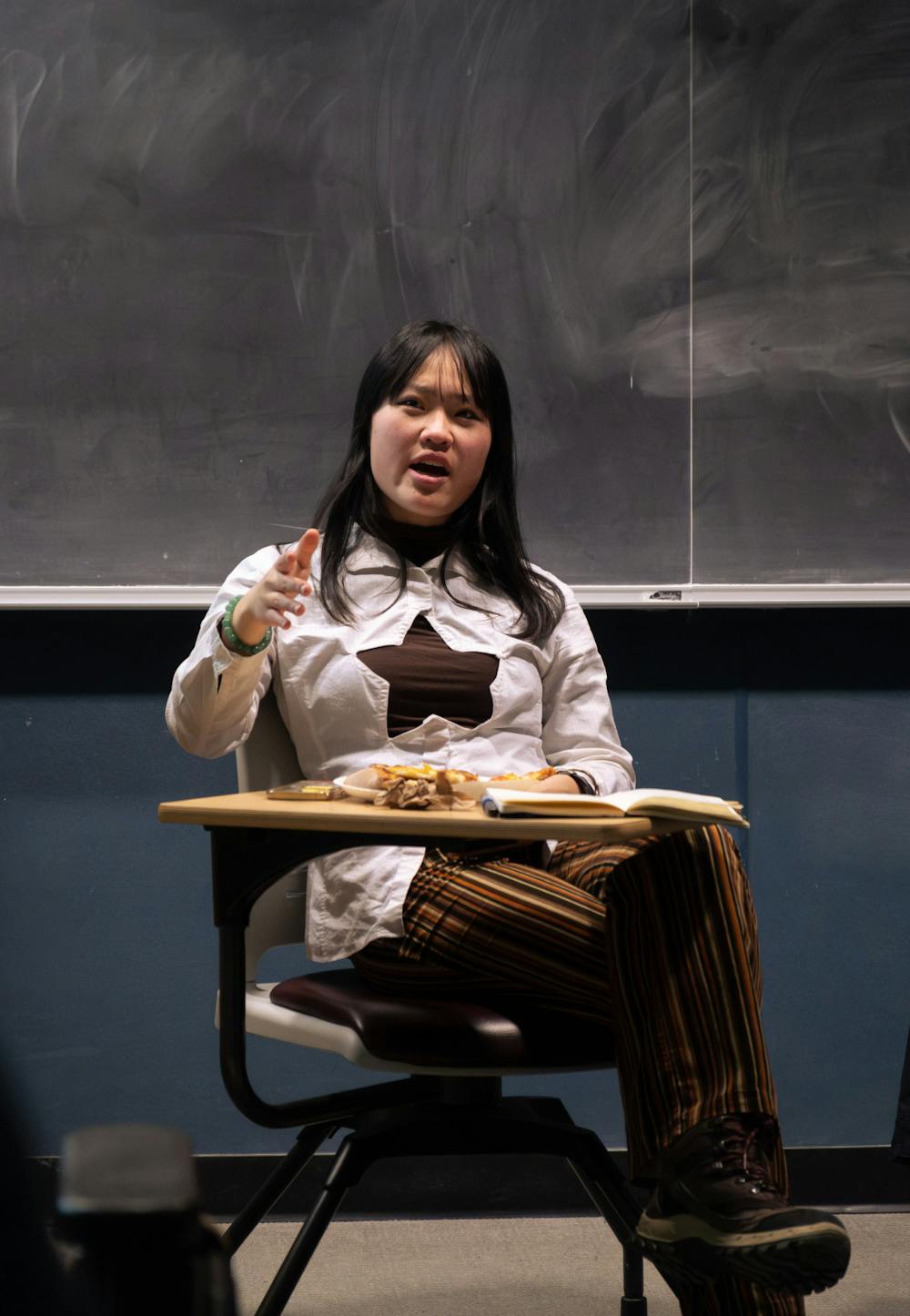 District 8 Alder candidate Ellen Zhang participates in a forum with competitor Bobby Gronert on Wednesday, March 18, 2026.