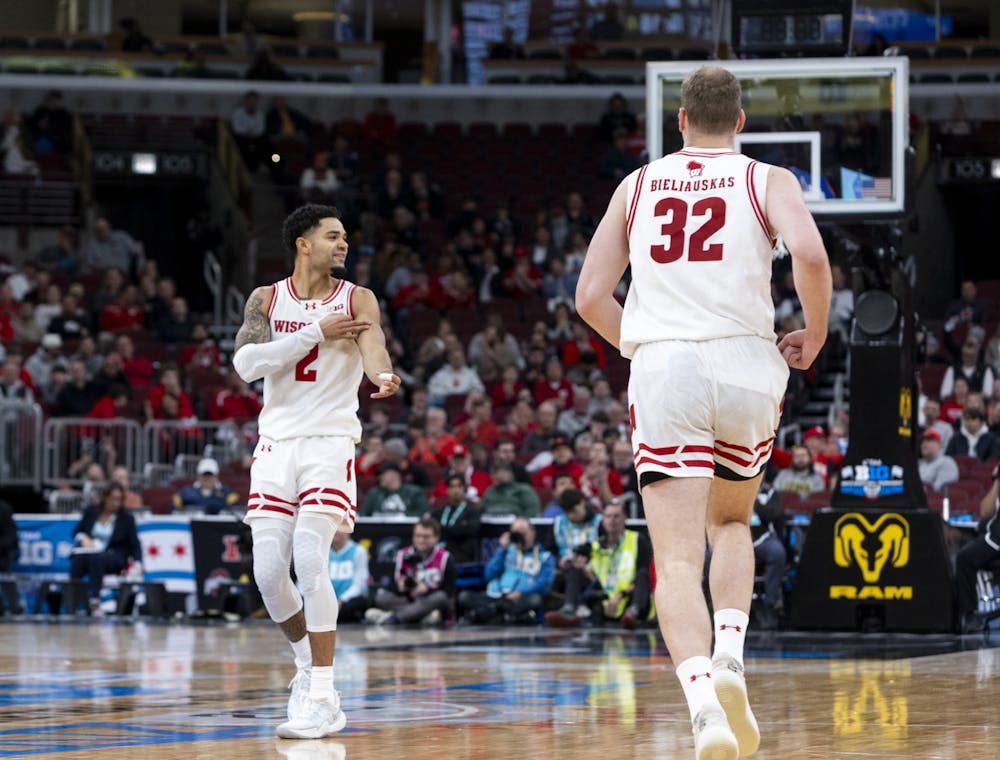 By Jonathan Mintz | 8:16pmA spectator mimics Nick Boyd's three-point celebration during the Wisconsin men's basketball team's 85-82 victory over Washington in round one of the Big Ten Men's Basketball Tournament on Thursday, March 12, 2026.