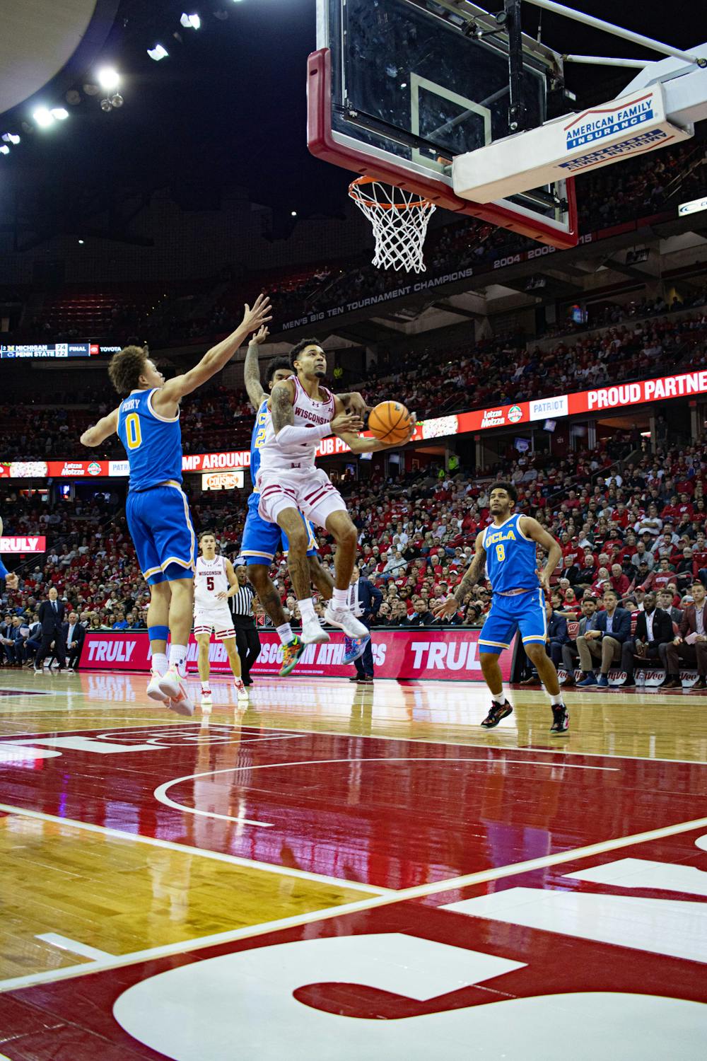 By Johnathan Dye | 11:36pmThe Wisconsin Badgers men's basketball team defeated the visiting UCLA Bruins 80-72 in the Kohl Center on Tuesday, Jan. 6, 2025.