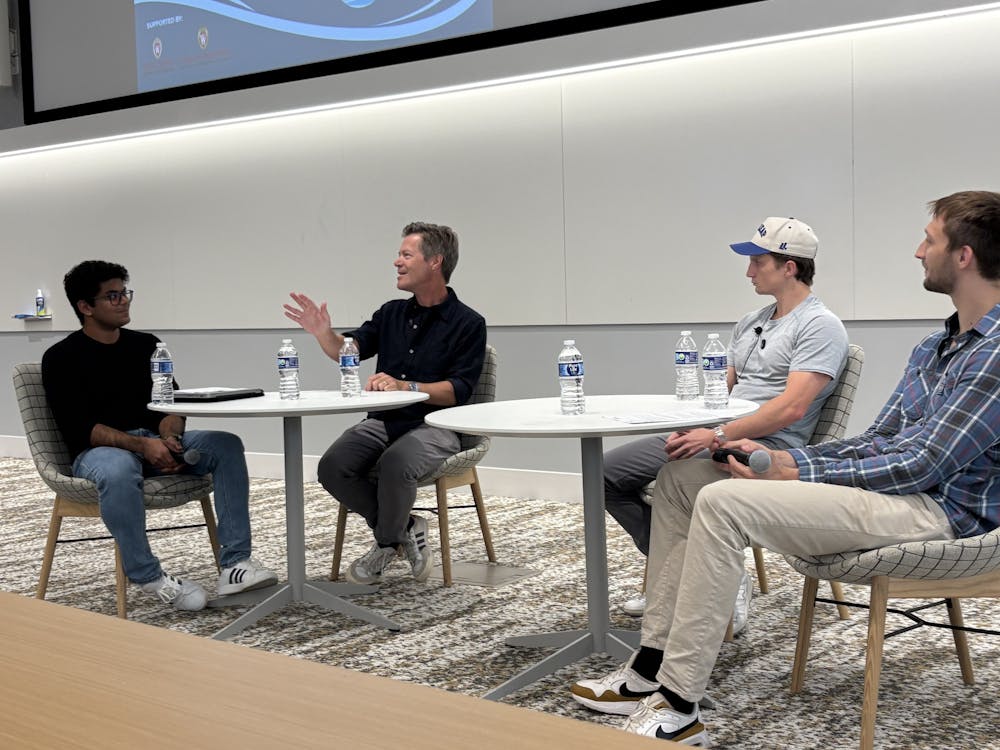 Entrepreneurs Mike Trigg and Max Schauff speak to UW students at a fireside chat hosted by Transcend UW.