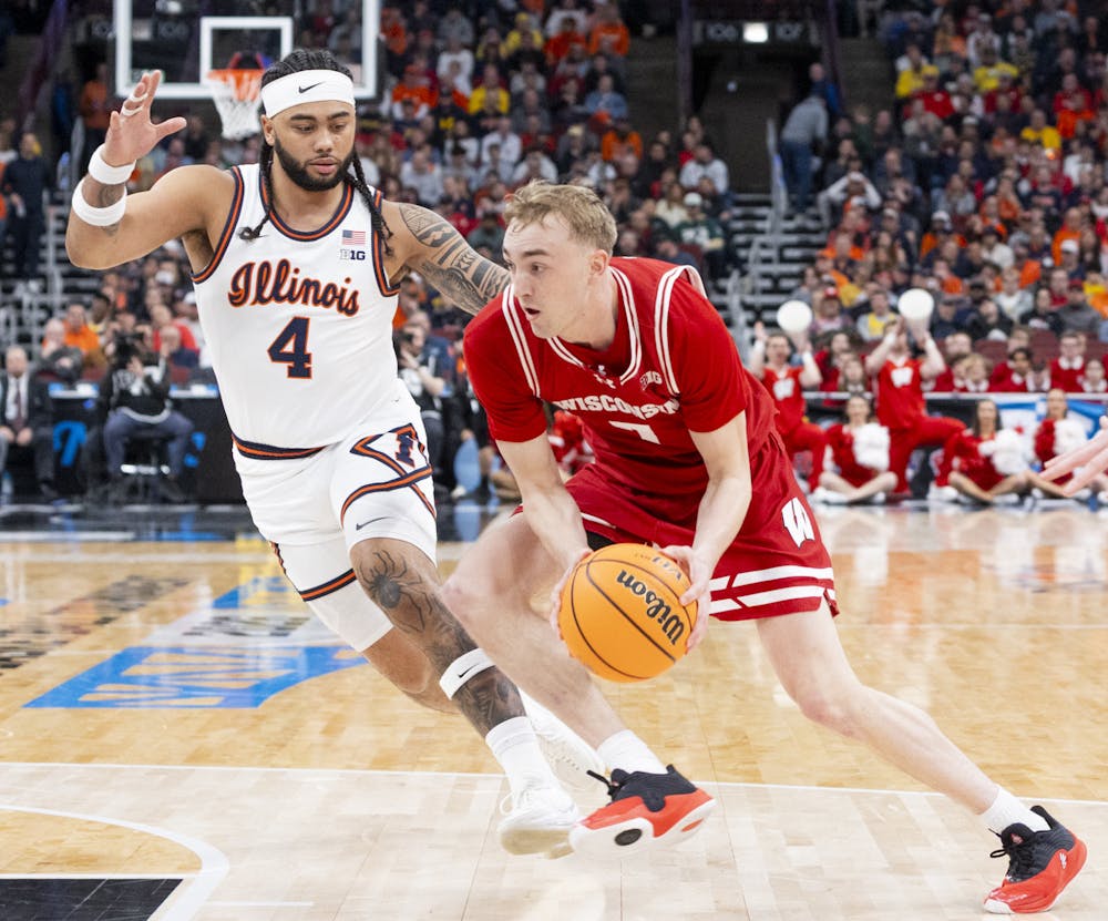 By Jonathan Mintz | 10:59pmKeaton Wagler passes the ball during the Wisconsin men's basketball team's 91-88 overtime victory over Illinois to advance to the semifinal of the Big Ten Tournament on Friday, March 13, 2026.