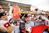 axe: Wisconsin players celebrate defeating Minnesota and keeping