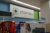 A pharmacy sign hangs above store aisles in the Walgreens location at 301 East Campus Mall.