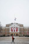 A student walks across a snowy Bascom Hill on January 22, 2025.