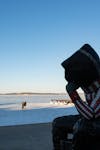 Students pictured walking on a frozen lake Mendota on January 22, 2025.