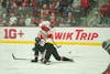 Forward Kelly Gorbatenko unloads a shot during Wisconsin's 4-2 WCHA regular season title-clinching victory over St. Cloud State in LaBahn Arena on Sunday, Feb. 22, 2026.