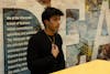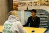 A protestor holds up a sign saying "Protect your neighbors. Protect yourself: Abolish ICE" at the ICE Out of Our Communities Rally on Library Mall on Friday, Jan. 30, 2026.