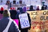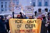 A protestor holds a sign saying "Hot people melt ICE" at the ICE Out March on Friday, Jan. 30, 2026.