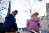 Two children sit on their parents' shoulders at the ICE Out March on Friday, Jan. 30, 2026.