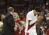 Senior Nick Boyd checks out of the game for the final time at the Kohl Center during Wisconsin men's basketball's 78-45 senior night victory over Maryland on Wednesday, March 4, 2026.