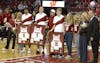 Seniors Braeden Carrington, Andrew Rohde, Isaac Gard, and Nick Boyd before Wisconsin men's basketball's 78-45 senior night victory over Maryland on Wednesday, March 4, 2026.