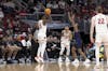 Guard John Blackwell takes a three-pointer during the Wisconsin men's basketball team's 85-82 victory over Washington in round one of the Big Ten Men's Basketball Tournament on Thursday, March 12, 2026.