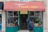 A man lounges among the shelves of books at Central Library enjoying the free public wifi, one of the many amenities at every Madison Public Library location in Madison, Wisconsin, Friday Oct. 10, 2025.