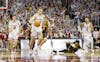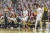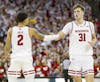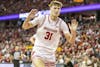 Guard Andrew Rohde celebrates during Wisconsin men's basketball's 84-71 victory over Iowa in the Kohl Center on Sunday, Feb. 22, 2026.