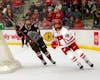 Forward Kelly Gorbatenko skates with the puck during Wisconsin women's hockey's 9-2 demolition of St. Cloud State on Saturday, Feb. 21, 2026.