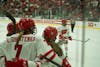 Forward Kelly Gorbatenko celebrates one of her four goals during Wisconsin women's hockey's 9-2 demolition of St. Cloud State on Saturday, Feb. 21, 2026.