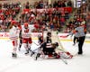 Wisconsin players come together after a goal during Wisconsin women's hockey's 9-2 demolition of St. Cloud State on Saturday, Feb. 21, 2026.